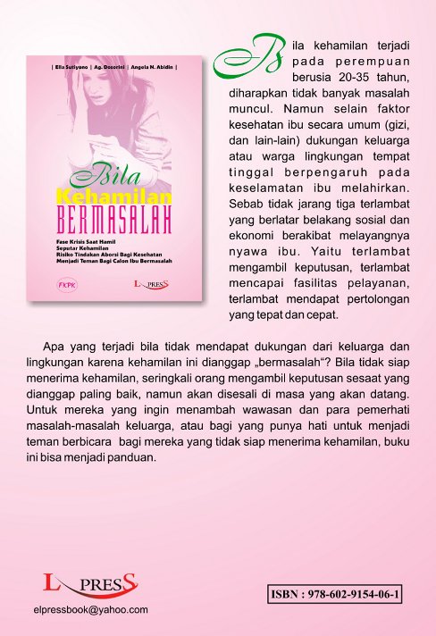 Buku BILA KEHAMILAN BERMASALAH ukuran 21×15 cm, tebal 115 halaman.