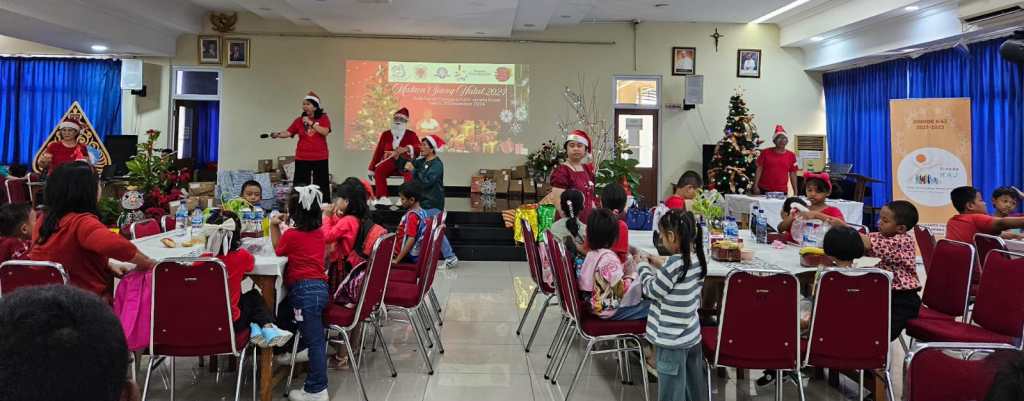 Sabtu, 28 Desember 2024 kurang lebih 100 anak hadir dalam Pesta Natal di jamuan Makan Siang Natal FKPK. MSN Ini adalah kali ke-2, FKPK ikut berpartisipasi dalam Gerakan MSN oleh PEMIKAT KAJ(Pertemuan Mitra Kategorial Keuskupan Agung Jakarta). Aula Gereja Katolik Santo Paskalis di Cempaka Putih Jakarta Pusat menjadi tempat kegiatan MSN kali ini.